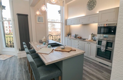 Archie's Anchor is a first floor apartment in a converted Victorian property in Scarborough, North Yorkshire. Hosting two bedrooms; a king-size double with en-suite, a small double and additional Z bed with memory foam mattress, and a bathroom, this property can sleep up to four people. Inside you will also find a kitchen, and a sitting room with dining area, balcony and electric stove. To the outside is roadside permit parking at the front of the property and on nearby streets. Located in a wonderful setting with lovely views over the sea and castle, Archie's Anchor is a delightful cottage in England.